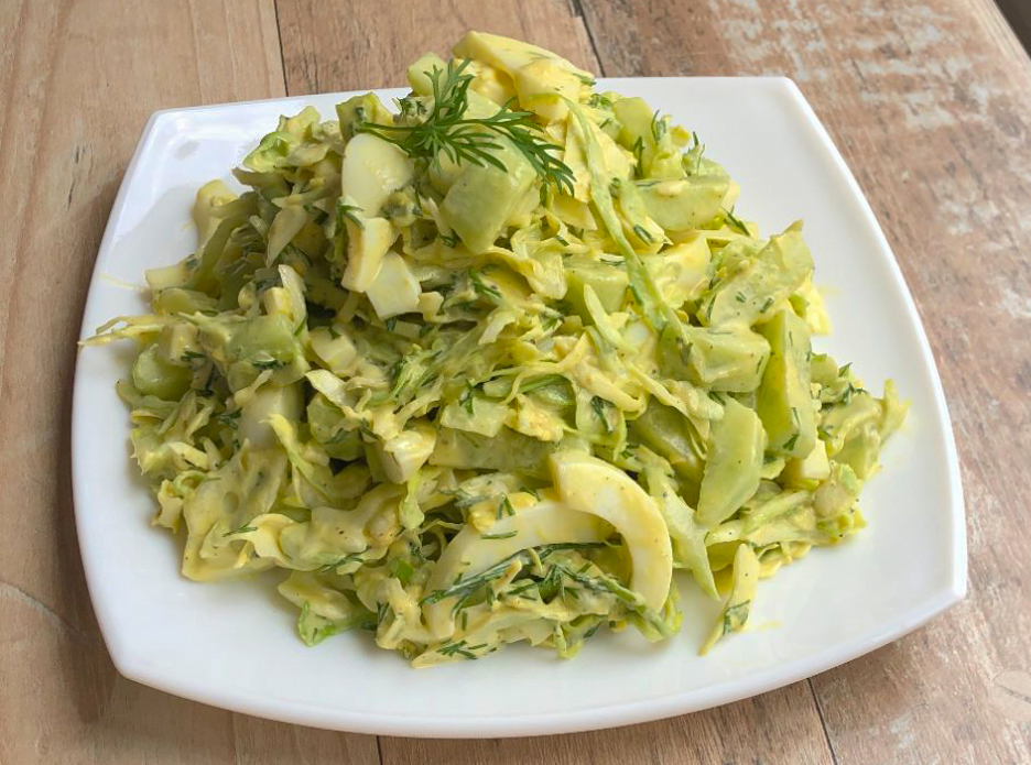 Gaivios kopūstų salotos su virtais kiaušiniais ir švelniu padažu