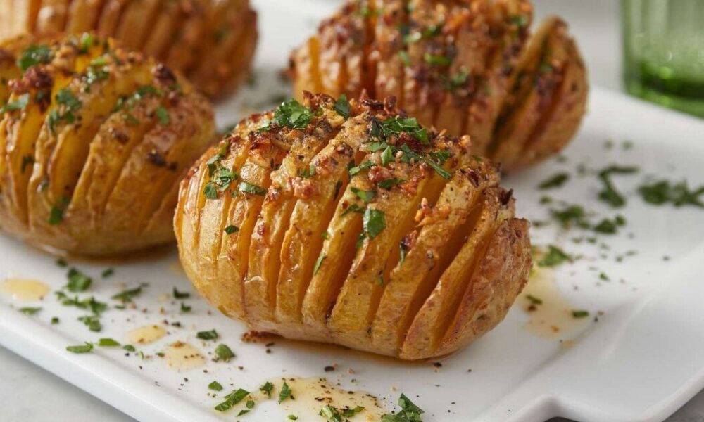 Hasselback bulvės – traškios išorėje, minkštos viduje ir kupinos česnako aromato